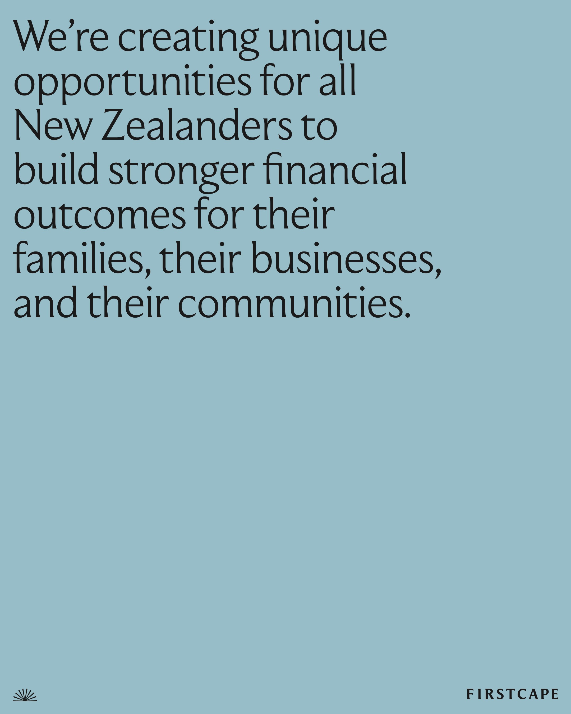FirstCape is a group of leading wealth management and asset management companies. Creating unique opportunities for all New Zealanders to build stronger financial outcomes for their families, their businesses, and their communities.